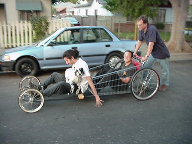 In its second incarnation the car was shortened and rear wheels were cambered for the tighter turns down Bernal Heights. This proved very effective but I again taco'd the rear wheel when I overconfidently did a spinout at the bottom of the hill.
